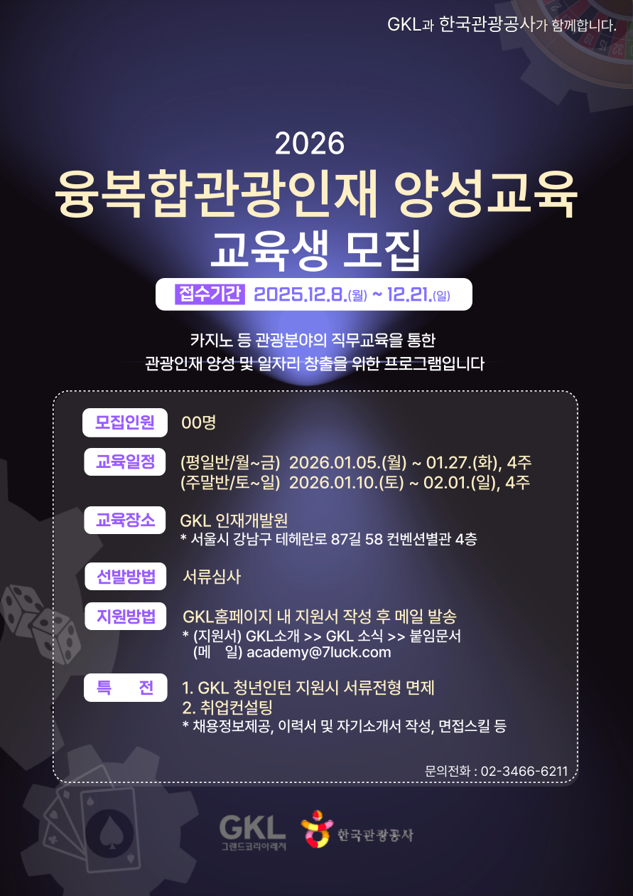 - 문의사항은 GKL 인재개발원 김상욱 과장(02-3466-6211)로 연락 바랍니다.